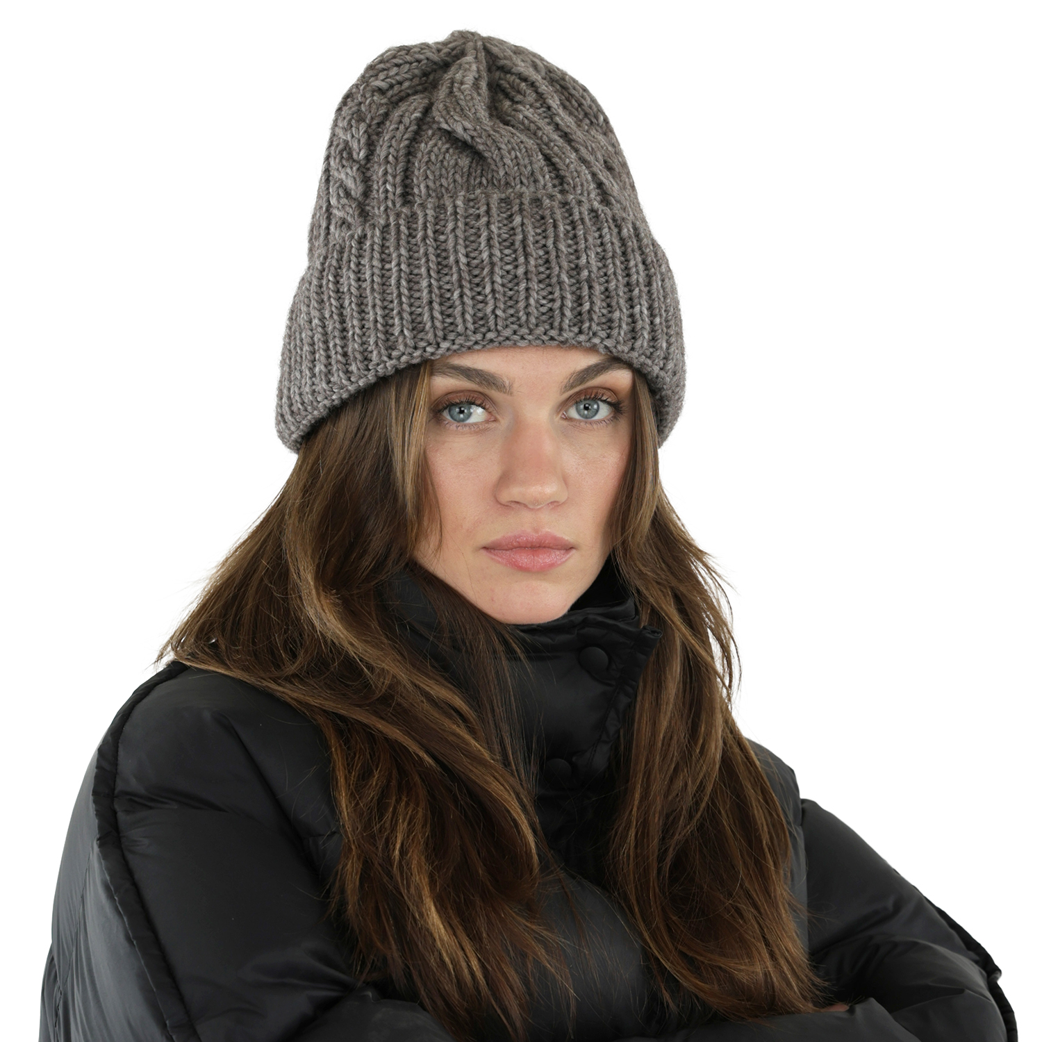 Mützen - Gårda Bormio Cable Knit Wool Mix Beanie (grau/beige)