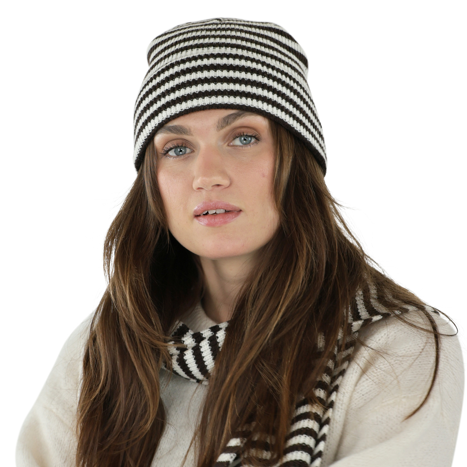 Schals - Gårda Engelberg Striped Wool Mix Scarf (braun/weiß)